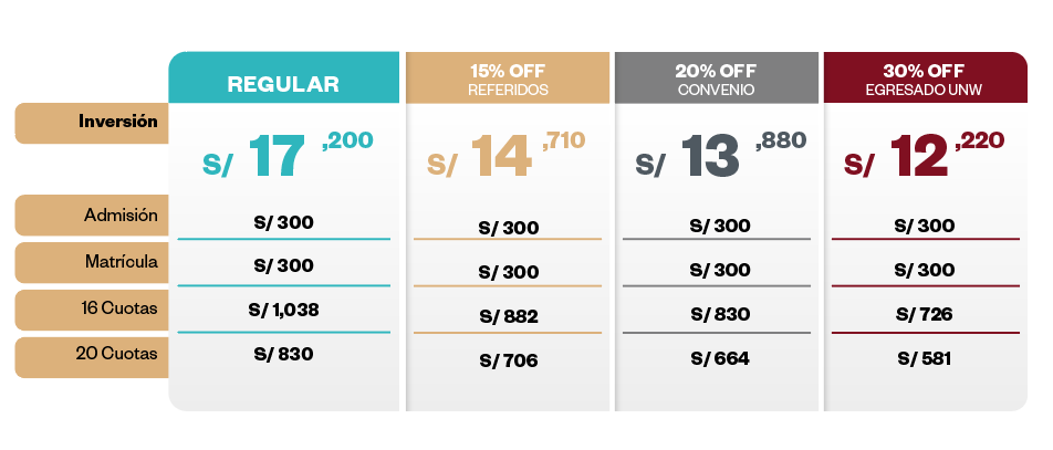 **Precios válidos para la campaña de admisión 2026. Sujetos a variación. Consulta términos y condiciones.